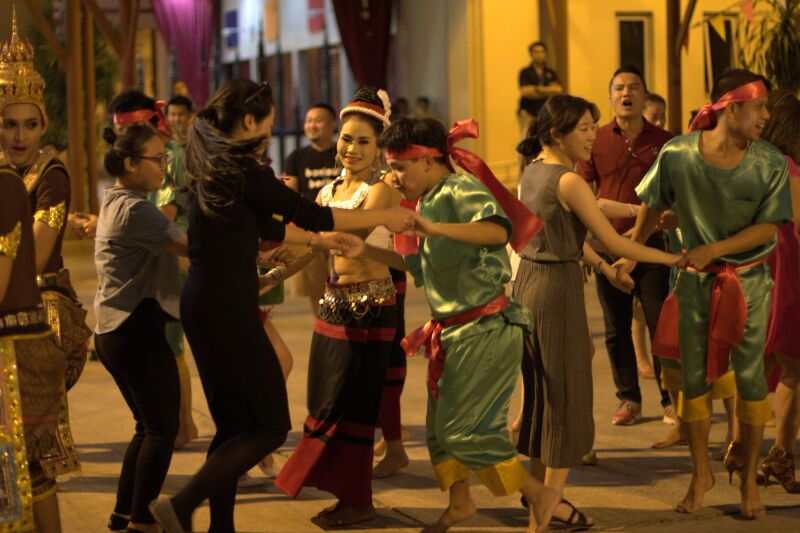 第一天早上七點鐘,大家搭乘旅游大巴前往寧波機場,一路上歡聲笑語,甚是融洽!中午12:30,航班準時起飛,經(jīng)過長達四個半小時的飛行到達曼谷廊曼機場。一出機場,熱情的泰國妹子為我們戴上鮮花,并對我們說一句“薩瓦迪卡”,意為祝福平安。隨后當?shù)氐膬晌粚?dǎo)游帶領(lǐng)我們分別上了兩輛大巴,經(jīng)過近一個小時的車程,我們到達第一站——暹羅夢幻劇場,在這里我們和大象合影,并欣賞了泰國獨特的民族風(fēng)情舞蹈。之后,進入泰國規(guī)模最大的宏偉華麗劇院觀賞世界級的泰國藝術(shù)和文化遺產(chǎn)表演,深入地了解泰國四個朝代和各個部域民村的“泰國農(nóng)村”生活、傳統(tǒng)、文化以及藝術(shù)和手工藝。