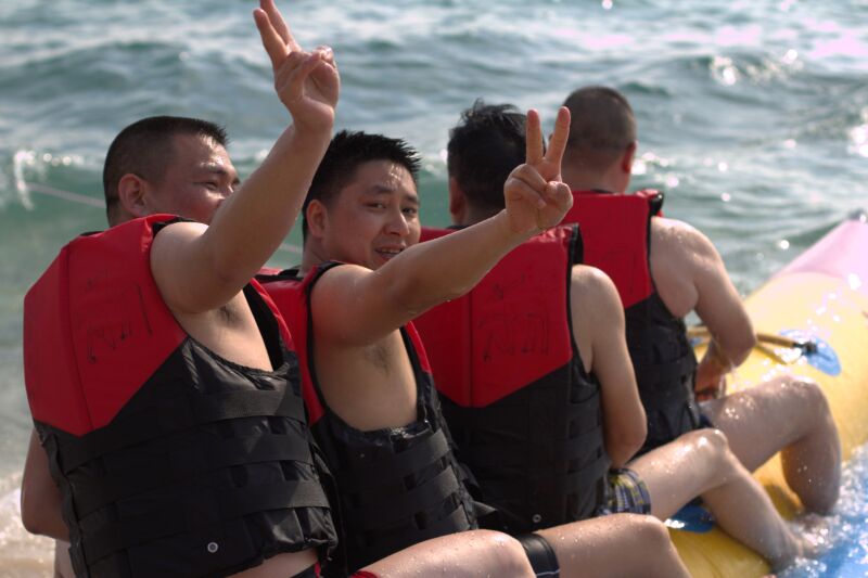 第三天早餐過后,我們收拾行李,開始向著芭提雅出發(fā)。芭堤雅是泰國的一顆璀璨明珠,這里的風(fēng)光旖旎,氣候宜人,享有“東方夏威夷”之稱。每當夜晚來臨,這里燈火通明,行人接踵而至,它是典型的聲色犬馬的世界,也是男人們的天堂。作為一個臨太平洋的國度,美麗的陽光海灘自然非去不可,我們乘坐快艇前往月亮灣和金沙島,享受陽光、沙灘、海水,乘坐降落傘、香蕉船、水上摩托、快艇沖浪、海中潛水……盡情體驗種種刺激。泰國的一大特色便是享譽世界的變性人文化,合理地存在于泰國本土。在“暹羅公主號”上,我們親身經(jīng)歷了最負盛名的人妖表演,“公主們”身段妖嬈,五官精致,歌舞精湛,雌雄難辨。