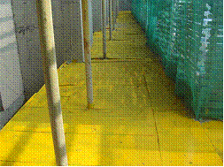 6、施工升降機(jī)平臺為防滑鋼板鋪設(shè),兩側(cè)采用模板剛性防護(hù)。