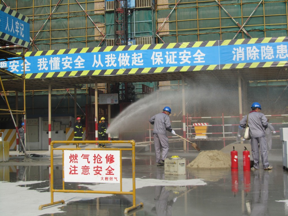 本次演習(xí)以施工現(xiàn)場的燃?xì)夤艿涝谑┕ぶ衅茐亩斐纱罅恳夯瘹庑孤榧傧氡尘埃謨蓚€階段模擬了事故應(yīng)急處置行動。第一階段,工地施工員發(fā)現(xiàn)險情后,立即向“119”指揮中心等相關(guān)部門(單位)報告,并切斷工地電源,燃?xì)夤窘拥较乐噶詈罅⒓唇M織搶修人員準(zhǔn)備應(yīng)急材料趕赴現(xiàn)場,并向規(guī)劃建設(shè)局相關(guān)領(lǐng)導(dǎo)匯報,規(guī)劃建設(shè)局領(lǐng)導(dǎo)在第一時間趕到事故現(xiàn)場,指導(dǎo)搶修工作。第二階段,根據(jù)《燃?xì)馔话l(fā)事故應(yīng)急預(yù)案》,消防、建設(shè)、城管、燃?xì)夤镜葐挝谎杆仝s赴現(xiàn)場,在現(xiàn)場指揮的統(tǒng)一指揮下,關(guān)閉閥門并對管道內(nèi)的氣體進(jìn)行快速放空燃燒,封堵泄漏點,經(jīng)安全檢測后恢復(fù)供氣,整個演習(xí)在緊張有序中圓滿結(jié)束。通過此次演習(xí),將進(jìn)一步提高施工企業(yè)的消防安全管理能力,提升事故應(yīng)急處置水平。