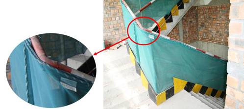 5、樓梯防護(hù)欄桿定型化,踢腳板設(shè)置到位。