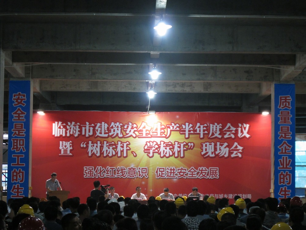 6月27日,圍繞“強(qiáng)化紅線意識(shí)、促進(jìn)安全發(fā)展”的安全生產(chǎn)月主題,臨海市住房與城鄉(xiāng)規(guī)劃局組織在我集團(tuán)公司承建施工的朗成大時(shí)代商住樓項(xiàng)目(2#、辦公樓、商業(yè)綜合樓)現(xiàn)場(chǎng)召開(kāi)臨海市建筑安全生產(chǎn)半年度會(huì)議暨“學(xué)標(biāo)桿、樹(shù)標(biāo)桿”現(xiàn)場(chǎng)會(huì),臨海市房屋建筑施工總承包企業(yè)的主要負(fù)責(zé)人、分管質(zhì)量安全負(fù)責(zé)人、監(jiān)理企業(yè)主要負(fù)責(zé)人、在臨施工外地企業(yè)分管質(zhì)量安全生產(chǎn)負(fù)責(zé)人及駐臨監(jiān)理企業(yè)負(fù)責(zé)人、在建工程項(xiàng)目負(fù)責(zé)人及項(xiàng)目總監(jiān)等近300余人參加了此次現(xiàn)場(chǎng)會(huì)。會(huì)議由市質(zhì)量監(jiān)督站站長(zhǎng)葉青主持,參加會(huì)議的領(lǐng)導(dǎo)有市住建局副局長(zhǎng)陳勇智、市安監(jiān)局副局長(zhǎng)周邦春、市建筑業(yè)管理局副局長(zhǎng)李春等。