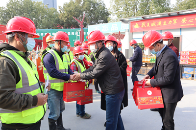 市建設(shè)局黨委副書(shū)記、副局長(zhǎng)包啟明,黨委委員王正強(qiáng)、李謙貴一行為12名非臨海籍留臨員工代表送上新春紅包和新年大禮包,大經(jīng)建設(shè)董事長(zhǎng)邵全臻、光大置業(yè)總經(jīng)理陳勇智給他們送上了新春年貨,感謝他們“舍小家為大家”投身臨海城建,助力疫情防控,鼓勵(lì)他們以臨海為第二家鄉(xiāng),安心留臨過(guò)年,安心在臨發(fā)展。